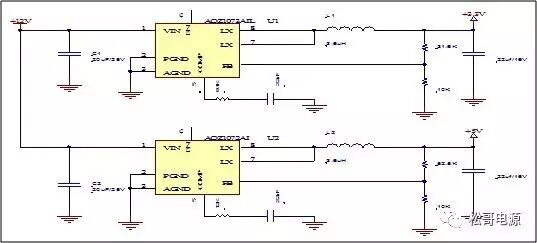 在笔记本电脑、LCDTV、蓝光DVD以及通讯系统的主板上通常会用到多个非隔离的DCDC变换器或LDO,以得到不同的电压分别给CPU的核及I/O、专用IC及存储器等芯片供电。为了提高系统的效率,通常几个大电流的DCDC变换器直接由输入的直流电压供电。由于DCDC变换器的工作频率高,形成一个很强的骚扰源,会产生很高的开关噪声,从而会在电源的输入端产生差模与共模干扰信号。对于共输入多路DC/DC变换器而言,当它们在空间上比较靠近时,更容易互相干扰,产生差频的噪声。本文将以共输入的二路DC/DC变换器为例,来讨论差频的噪声产生原因和解决办法。