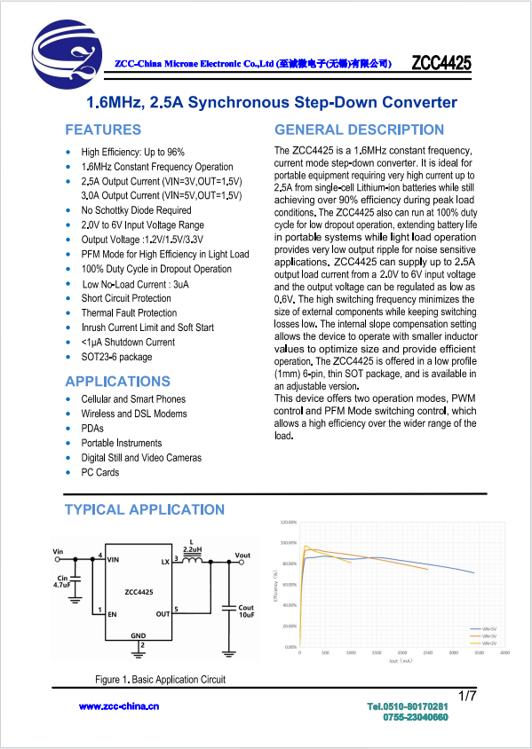 特性 高效率:高达96% 1.6MHz恒频运行 2.5A输出电流(VIN=3V,OUT=1.5V) 3.0A输出电流(VIN=5V,OUT=1.5V) 不需要肖特基二极管 2.0V至6V输入电压范围 输出电压:1.2V/1.5V/3.3V PFM模式,在轻负载中实现高效率 ...
