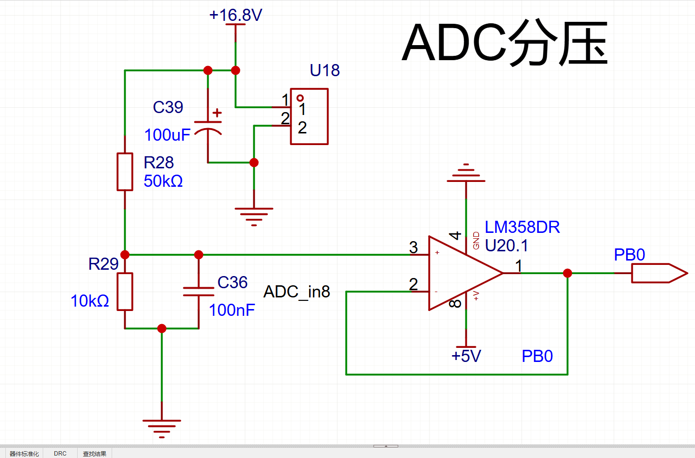 asamisan 发表于 2025-11-20 17:17 楼主的电路图可能与实际电路不一致亦或有其它未知因素导致电阻分压异常。在实际应用的类似电路中只要滤波电容不漏电,分压很准确,在常温环境温飘几乎可以忽略,不可能有百分之十几变化。按16.8V经1/6分压应当2.8V,你初始2.68V就不对。LM358输入阻抗极高,对分压影响几近于无。分压电压明显变化只有两种可能:+16.8电源电压变化和分压点有其它导致漏电的因素,例如电路板被污染。 |