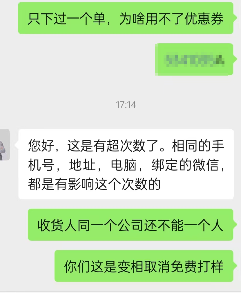 66个帖子,唯一的主题帖竟然只是个抱怨的。这个规则很早就有的,只要地址、电话、微信和IP是唯一的,每个月两次免费打样还是有的,只是门槛慢慢提高了;另外,之前免费的规格变成付费是20元,现在改成30元,如果今后取消免费,打样的费用必定提高了 。 |