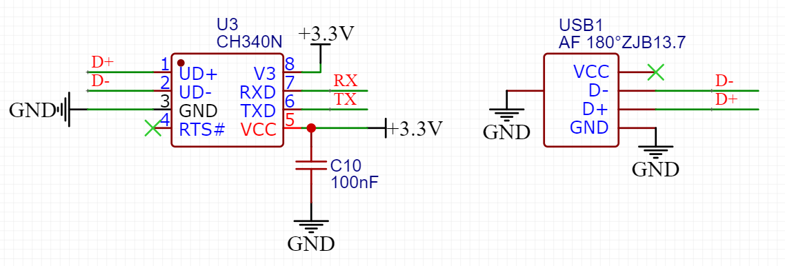 想用ch340n转usb做串口通信用,目前的问题是pc设备管理器也可以识别到ch340串口,但是使用modbus做串口通信时没有反应,ch340n的电路如上,没有用usb5v供电,用的是和单片机相同的内部3.3v供电,大佬可以看一 ...