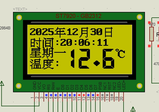显示屏:12864带ST7920-GB2312中文字库!