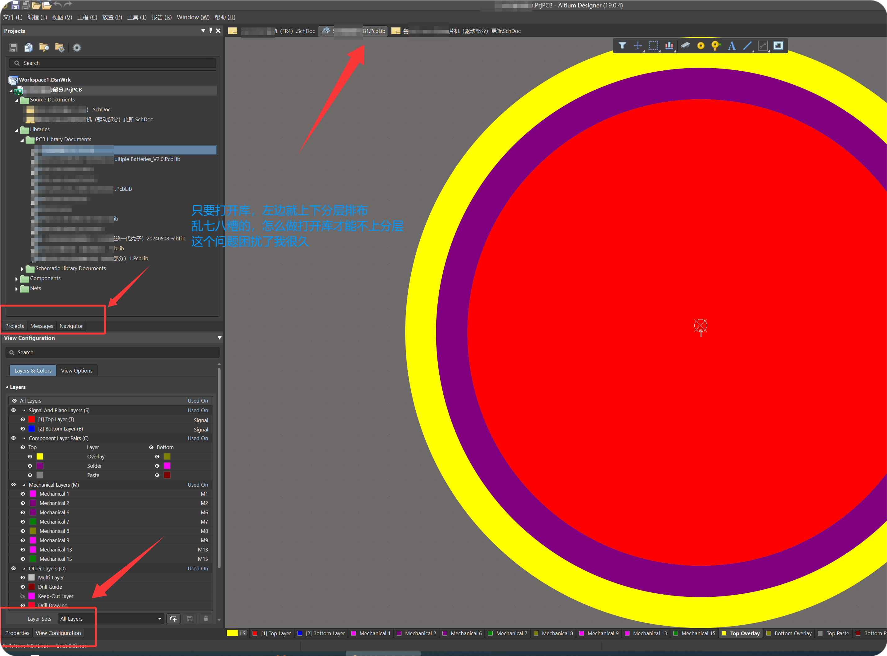 AD19打开库左边上下分层显示,怎么解决?不要上下分层,很丑,不方便找属性内容