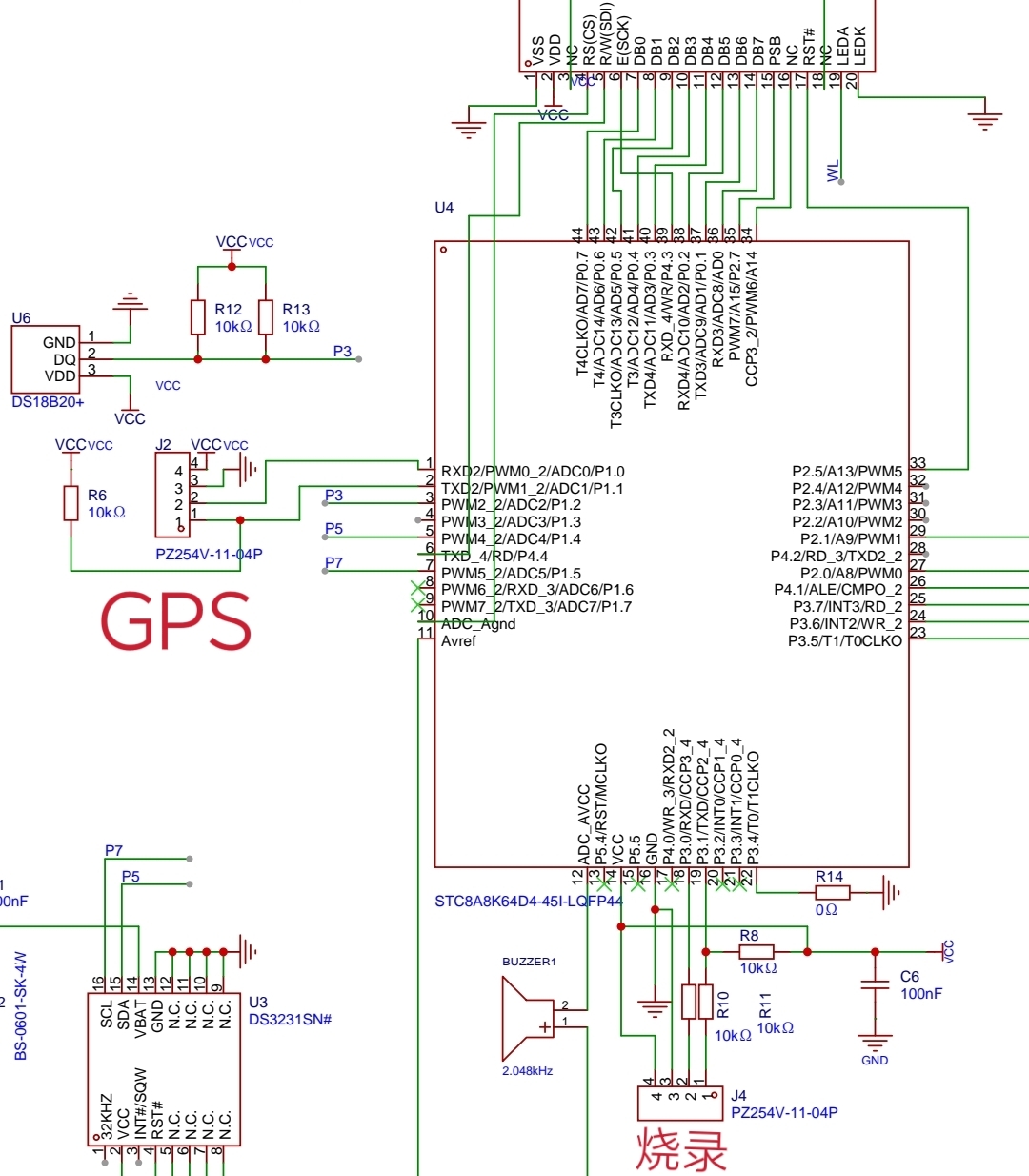 #include <string.h> void UartInit4800(void) //4800bps@30.000MHz { SCON = 0x50; //8位数据,可变波特率 AUXR |= 0x40; //定时器1时钟为Fosc,即1T AUXR &= 0xFE; //串口1选择定时器1为波特率发生器 TMOD &= 0x0F; //设定定时器1为16位自动重装方式 TL1 = 0xE5; //设定定时初值 TH1 = 0xF9; //设定定时初值 ET1 = 0; //禁止定时器1中断 TR1 = 1; //启动定时器1 ES = 1; //使能串口1中断 EA = 1; } void UartInit9600(void) //9600bps@30MHz { SCON = 0x50; //8位数据,可变波特率 AUXR |= 0x40; //定时器1时钟为Fosc,即1T AUXR &= 0xFE; //串口1选择定时器1为波特率发生器 TMOD &= 0x0F; //设定定时器1为16位自动重装方式 TL1 = 0xF3; //设定定时初值 TH1 = 0xFC; //设定定时初值 ET1 = 0; //禁止定时器1中断 TR1 = 1; //启动定时器1 ES = 1; //使能串口1中断 EA = 1; } void UartInit1152(void) //115200bps@30.000MHz { SCON = 0x50; //8位数据,可变波特率 AUXR |= 0x40; //定时器1时钟为Fosc,即1T AUXR &= 0xFE; //串口1选择定时器1为波特率发生器 TMOD &= 0x0F; //设定定时器1为16位自动重装方式 TL1 = 0xBF; //设定定时初值 TH1 = 0xFF; //设定定时初值 ET1 = 0; //禁止定时器1中断 TR1 = 1; //启动定时器1 ES = 1; //使能串口1中断 EA = 1; } void UartInit(){ switch(bps) { case 0:// UartInit1152(); break; case 1:// UartInit9600(); break; case 2:// UartInit4800(); break; default: UartInit1152(); break; } } void Uart() interrupt 4 using 1 { uchar data Rx_temp ; static uchar fg_count=0; //数据间隔,计数 static uchar Rx_count=0; static uchar n=0; //握手信号计数 static uchar da_count=0; //数据计数 uchar idata GPRMC[6]={0x24,0x47,0x50,0x52,0x4D,0x43}; //GPS选择接收字符$GPRMC, uchar idata GPVTG[6]={0x24,0x47,0x50,0x56,0x54,0x47}; //GPS选择接收字符$GPVTG, if(RI) { RI=0; Rx_temp=SBUF; /******* 监控握手信号进行软件复位自动下载 ******/ if(Rx_temp==0x7f) { //STC下载指令是0x7f n++; if(n>20) //如果连续收到20次0x7f { IAP_CONTR=0x60; //复位至ISP区 n=0; } } else n=0; /********* GPS数据处理 **************/ if(Rx_count<6) { if(Rx_temp==GPRMC[Rx_count]) //比较开始$GPRMC字符, Rx_count++; else Rx_count=0; } else //找到GPRMC开始保存数据 { if(Rx_temp==',') //如果收到逗号, { fg_count++; //计数增加 da_count=0; } else { if(fg_count==1) //保存时间数据 { if(da_count<6) //只保存前6位时间数据 SJ[da_count++]=Rx_temp; } else if(fg_count==2) //保存定位信息 { if(Rx_temp=='A') //如果收到A DW_OK=1; //则定位成功 else DW_OK=0; } /*****************************************************/ else //纬度 if(fg_count==3) //保存定位信息 { if(da_count<10) //只保存前10位时间数据 weidu[da_count++]=Rx_temp; } else //纬度半球N(北半球)或S(南半球) if(fg_count==4) //保存定位信息 { NS=Rx_temp; } else//经度 if(fg_count==5) //保存定位信息 { if(da_count<10) //只保存前10位时间数据 jindu[da_count++]=Rx_temp; } else //经度半球E(东经)或W(西经) if(fg_count==6) //保存定位信息 { EW=Rx_temp; } else //地面速率(000.0~999.9节,前面的0也将被传输) if(fg_count==7) //保存定位信息 { if(da_count<5) //只保存前10位时间数据 shudu[da_count++]=Rx_temp; } /*****************************************************/ else if(fg_count==9) //保存日期数据 RQ[da_count++]=Rx_temp; else if(fg_count>9) //接收完毕 { RX_over=1; fg_count=0; da_count=0; Rx_count=0; } } } /************************************************ if (Rx_temp == '$') //如果收到字符'$',便开始接收 { rev_start = 1; rev_stop = 0; } if (rev_start == 1) //标志位为1,开始接收 { rev_buf[num++] = Rx_temp; //字符存到数组中 if (Rx_temp == '\n') //如果接收到换行 { rev_buf[num] = '\0'; rev_start = 0; rev_stop = 1; //gps_flag = 1; num = 0; } } *************************************************/ } } double Str_To_Double(char *buf) { xdata double rev_d = 0; xdata uchar dat; xdata uchar integer = 1; xdata char *str = buf; xdata int i; while(*str != '\0') { switch(*str) { case '0': dat = 0; break; case '1': dat = 1; break; case '2': dat = 2; break; case '3': dat = 3; break; case '4': dat = 4; break; case '5': dat = 5; break; case '6': dat = 6; break; case '7': dat = 7; break; case '8': dat = 8; break; case '9': dat = 9; break; case '.': dat = '.'; break; } if(dat == '.') { integer = 0; i = 1; str ++; continue; } if( integer == 1 ) { rev_d = rev_d * 10 + dat; } else { if(i<10000) rev_d = rev_d + dat / (10 * i); i = i * 10 ; } str ++; } return rev_d; } float Str_To_Float(char *buf) { xdata float rev = 0; xdata uchar dat; xdata uchar integer = 1; xdata char *str = buf; xdata int i; while(*str != '\0') { switch(*str) { case '0': dat = 0; break; case '1': dat = 1; break; case '2': dat = 2; break; case '3': dat = 3; break; case '4': dat = 4; break; case '5': dat = 5; break; case '6': dat = 6; break; case '7': dat = 7; break; case '8': dat = 8; break; case '9': dat = 9; break; case '.': dat = '.'; break; } if(dat == '.') { integer = 0; i = 1; str ++; continue; } if( integer == 1 ) { rev = rev * 10 + dat; } else { rev = rev + dat / (10 * i); i = i * 10 ; } str ++; } return rev; } void Int_To_Str(int x,char *Str) { xdata int t; xdata char *Ptr,Buf[5]; xdata int i = 0; Ptr = Str; if(x < 10) // 当整数小于10时,转化为"0x"的格式 { *Ptr ++ = '0'; *Ptr ++ = x+0x30; } else { while(x > 0) { t = x % 10; x = x / 10; Buf[i++] = t+0x30; // 通过计算把数字转化成ASCII码形式 } i -- ; for(;i >= 0;i --) // 将得到的字符串倒序 { *(Ptr++) = Buf[i]; } } *Ptr = '\0'; } void utc2btc(){ uchar xdata max; shi=(SJ[0]-0x30)*10 + (SJ[1]-0x30); //时 fen=(SJ[2]-0x30)*10 + (SJ[3]-0x30); //分 miao=(SJ[4]-0x30)*10 + (SJ[5]-0x30); //秒 ri=(RQ[0]-0x30)*10 + (RQ[1]-0x30); //日 yue=(RQ[2]-0x30)*10 + (RQ[3]-0x30); //月 nian=(RQ[4]-0x30)*10 + (RQ[5]-0x30); //年 shi+=8; //转换为北京时间 ,东8区要+8 if(shi>23) //如果超过23则到了第二天 { shi-=24; // ri+=1; //日