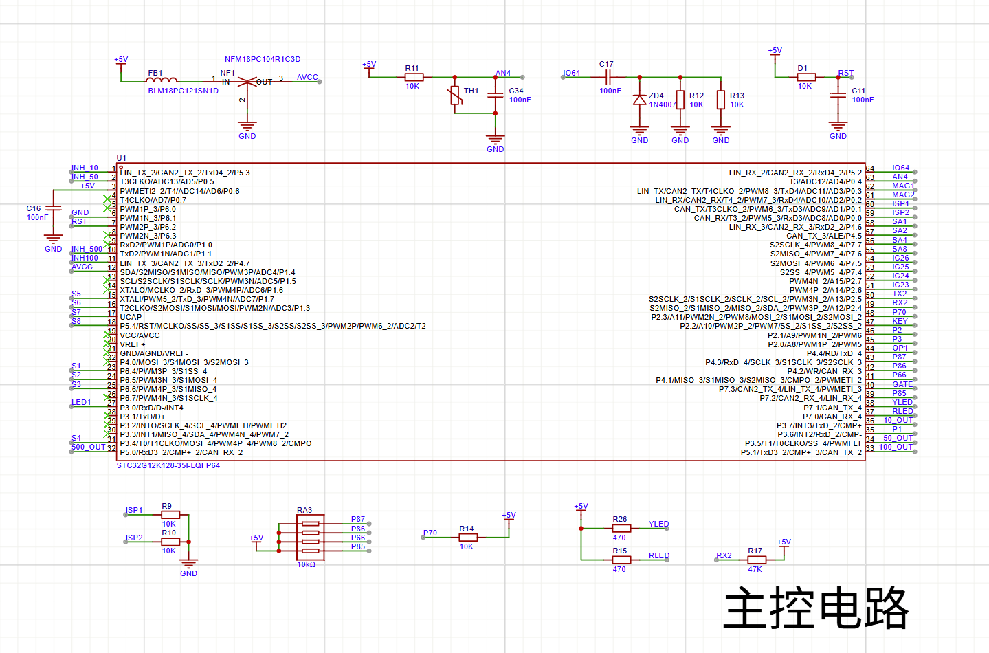 如图,主控部分采集MAG1和MAG2线圈模拟信号输入,芯片型号不知道我随便选的引脚和封装标注不一致。整个电路现在还有个外部芯片不知道有什么作用,一个下拉和三个上拉均连到芯片IO口。感觉这个电路对ADC精度要求还是 ...