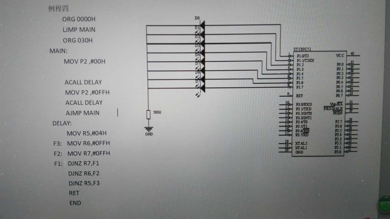 ;例如MOV指令,执行这条指令需要一个机器周期。DJNZ指令,执行这条指令需要2个机器周期。 ;延时程序共有三层循环 ;一层循环n:R7*2 = 255*2 = 510个机器周期 (DJNZ 2个机器周期) ;二层循环m:R6*(n+3) = 255*513 = 130815个机器周期 (DJNZ 2个机器周期 + R5赋值 1个机器周期 = 3个机器周期) ;三层循环: R5*(m+3) = 4*130818 = 523272个机器周期 (DJNZ 2个机器周期 + R6赋值 1个机器周期= 3个机器周期) ;循环外: 5个机器周期 子程序调用 2个机器周期 + 子程序返回 2个机器周期 + R7赋值 1个机器周期 = 5个机器周期 ;延时总时间 = 三层循环 + 循环外 = 523272+5 = 523277个机器周期 ;计算公式:延时时间=[(2*R7+3)*R6+3]*R5+5 ORG 0000H LJMP MAIN ;意思是该条指令从ROM的0000H单元开始存放, ORG 0030H MAIN:MOV ..... ;意思是此指令从ROM的30H开始存放,该指令是为了绕开0003H,000BH,0013H,001BH.....等中断入口而设置. ORG指令属于伪指令,不控制程序执行,只是控制汇编过程,也就是说,ORG指令在汇编过程中,告诉紧随其后的指令存放的位置.所以在程序执行时,从0000H单元取出长转移指令LJMP MAIN后,自然会转移到主程序MAIN:MOV.......了. |